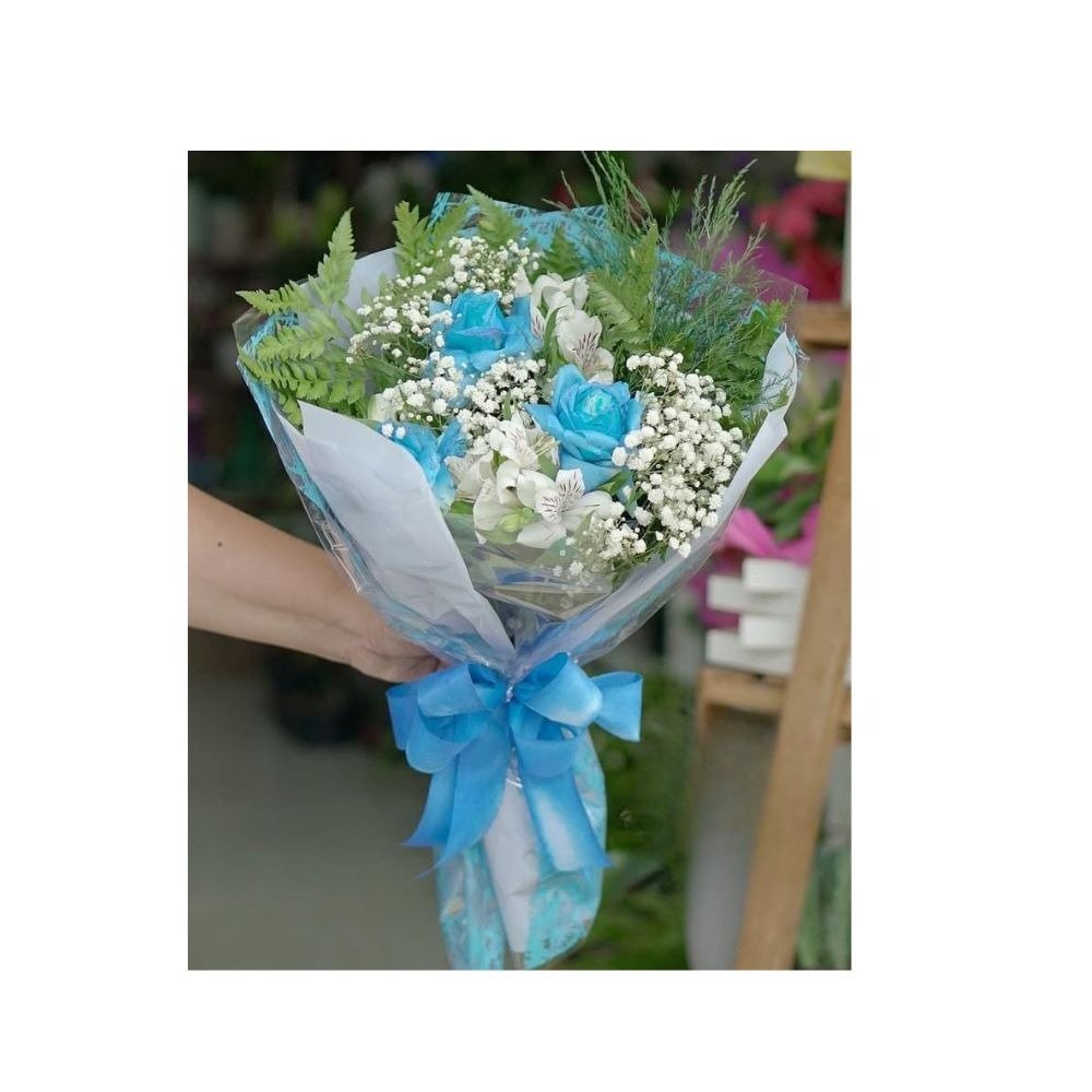 DESCRIÇÃO:Lindo Buquê com 3 rosas Azuis mais procuradas para presentear sua pessoa amada com toda sua delicadeza e elegância ideal para presente. Ele é a opção certa de presente de Dia dos Namorados, aniversário ou para uma decoração de amor. Não perca a chance de encantar aquela pessoa especial.COMPOSIÇÃO:Rosas Azuis Pegmentadas Folhagem Samambaia ou AvencãoAtromelias GypsofolaEmbalagem para a viagemDETALHESDURAÇÃONossas flores de corte duram em média 5 dias. Para dicas de como conservar por mais tempo acesse a página de Dicas de ConservaçãoCARTÃOÉ possível incluir uma mensagem junto ao seu presente! Prossiga com a compra e na tela de ENTREGA basta escolher o cartão e escrever a mensagem. Caso queira enviar em Anônimo escolha a opção NÃO QUERO CARTÃO.ENTREGA E FRETE:Para consultar o prazo e valor de entrega. Preencha o CEP de entrega, clique em OK e verifique as opções disponíveis. Para acompanhar a entrega do seu presente informe o seu telefone CelularIMPORTANTEA Giuliana Flores trabalha com floriculturas parceiras por todo o Brasil, que tem treinamento, experiência e materiais para manter a qualidade exigida. Porém, devido às características de cada local, variações naturais das flores e outras interferências, os produtos podem sofrer alterações. As imagens exibidas são meramente ilustrativas