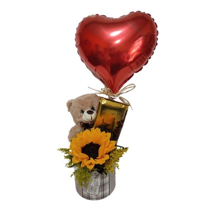 DESCRIÇÃO:Cachepô Especialmente para Você COMPOSIÇÃO:1 Arranjo de Girassol1 Galho de Tango 1 Pelúcia 1 Barra de Chocolate Alpino ( 90 gramas) 1 Balão Grande de coração&nb...