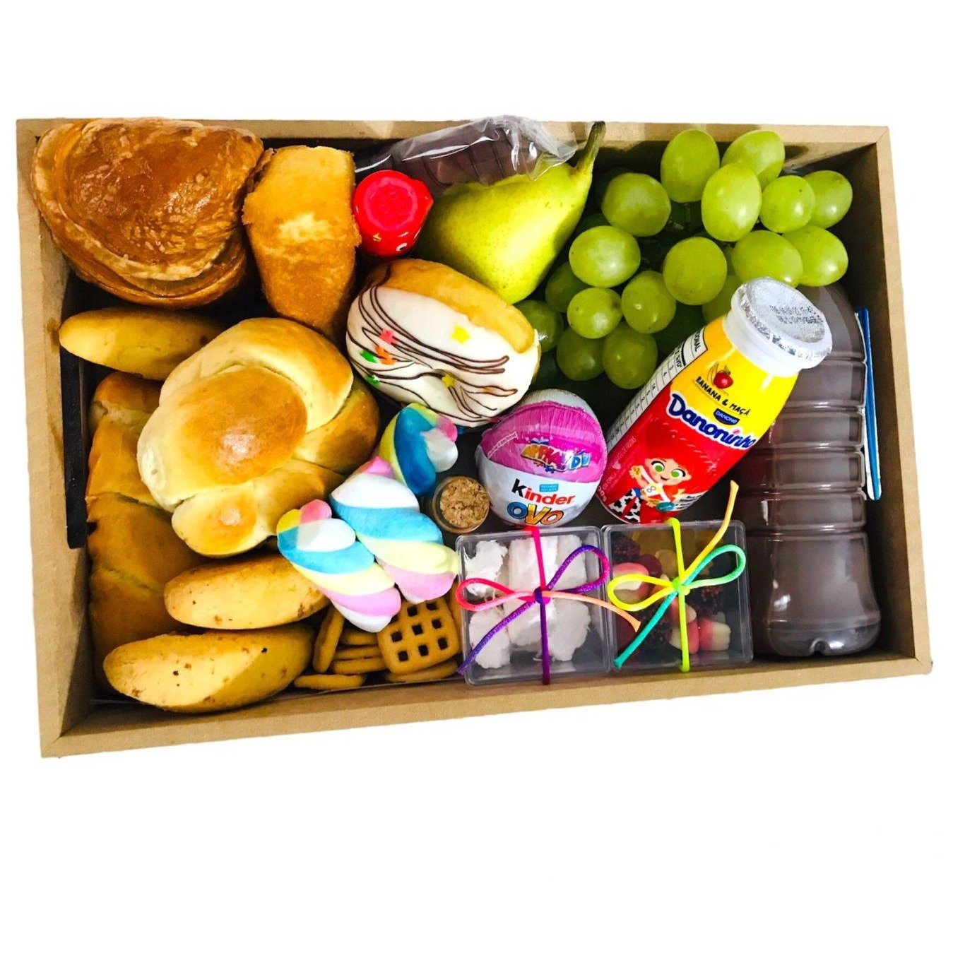 Uma cesta pensada para o paladar das crianças, repleta de doces e outras gostosuras.